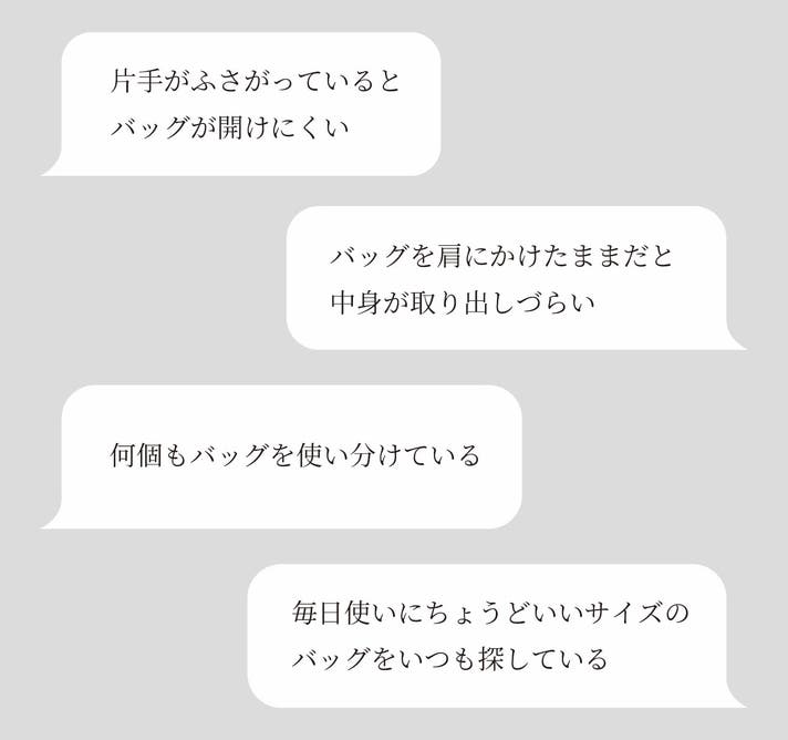 何個もバッグを使い分ける必要がなく、毎日自然と手に取りたくなる使う人に寄り添う相棒バッグを目指しました。
