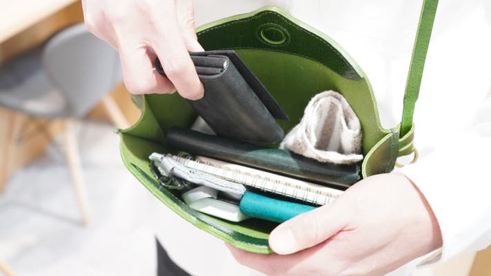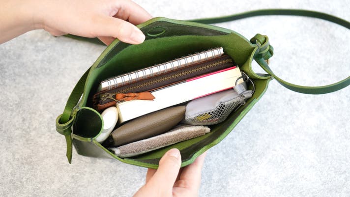 スマホ、財布、手帳や小さめの化粧ポーチなど、必要なものはきちんと収納。