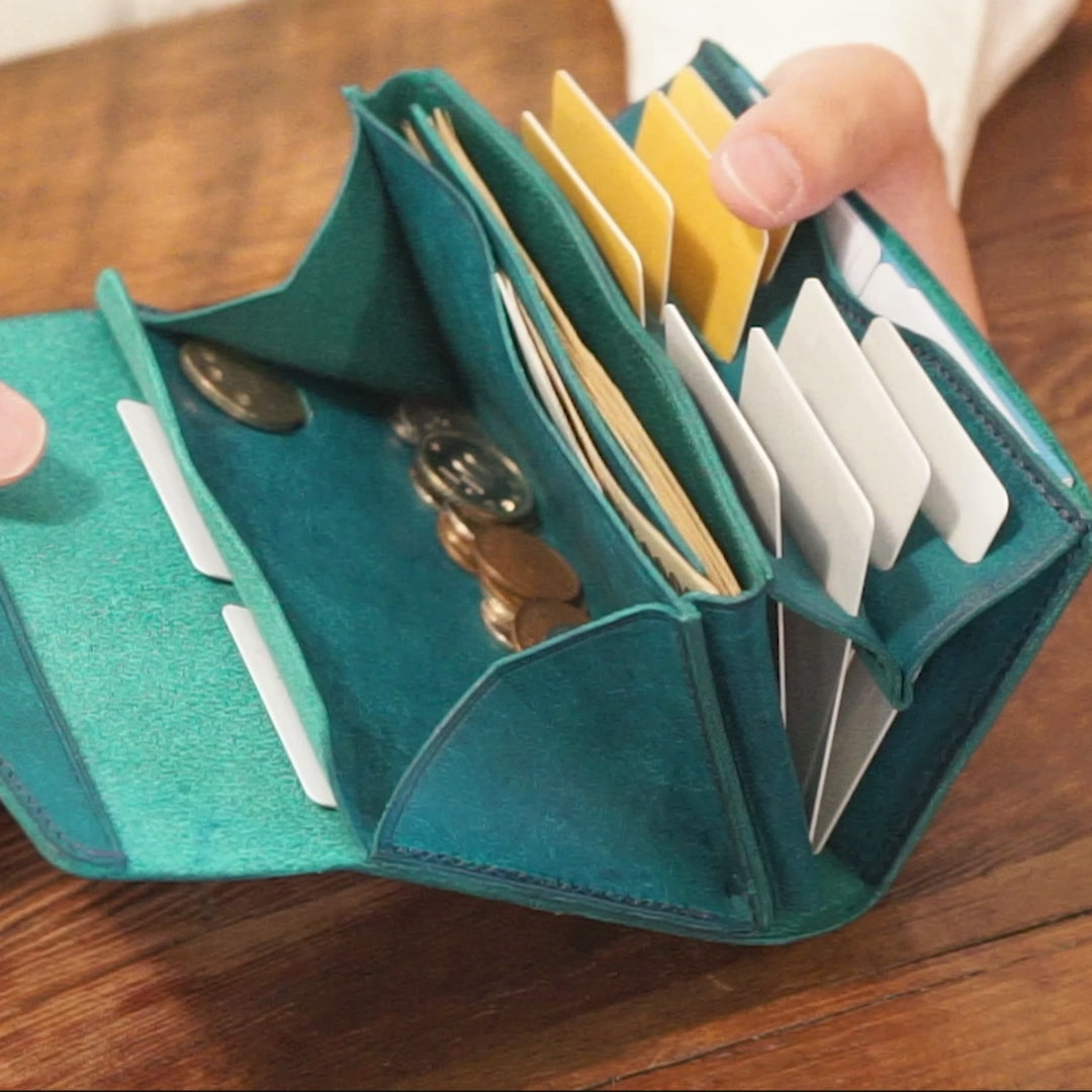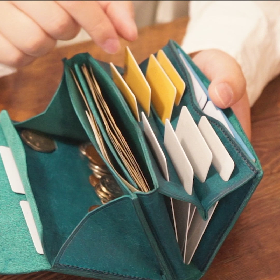 ※商品は最初、革が引き締まった状態ですので若干カード等入れにくさを感じることがございますが、お使いいただくほどに、革の繊維がゆるみ手馴染みが良くなり、カードも入れやすくなってまいります。