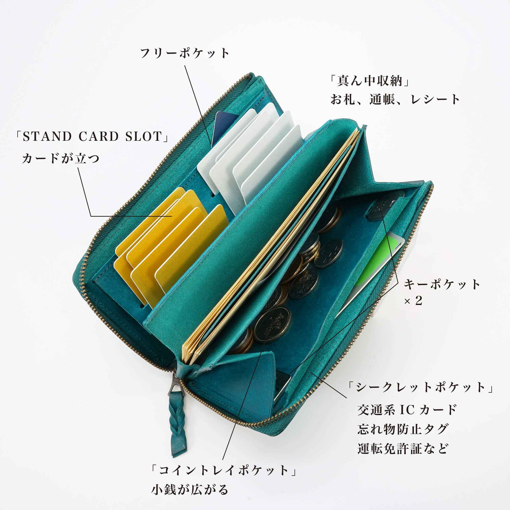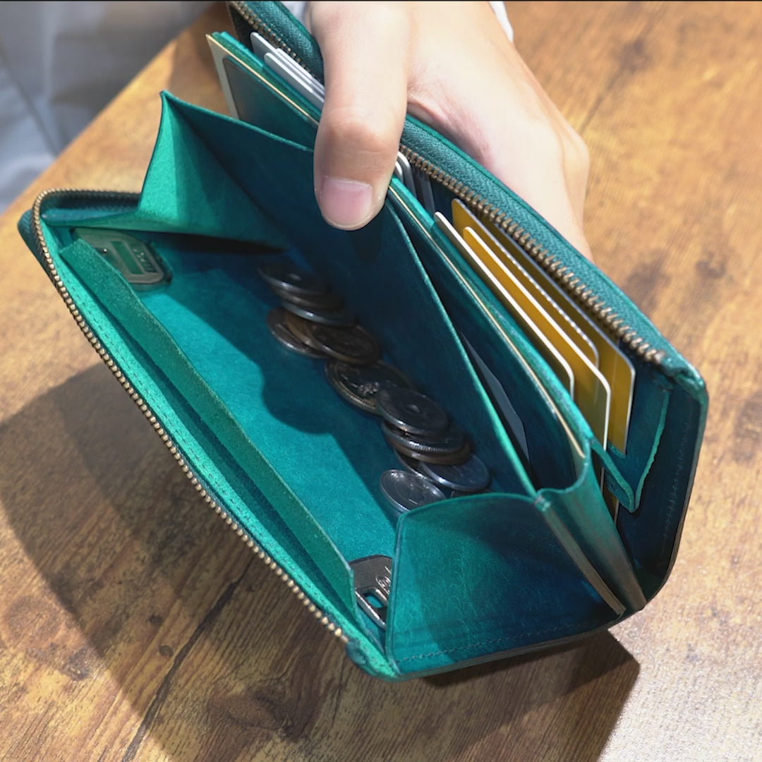 ファスナーを開けると瞬時に全体を俯瞰できる。さらにお金の出し入れも簡単でスピーディー!レジのお支払い時、あなたの後ろに並ばれるお客様の圧を気にしなくても大丈夫です。