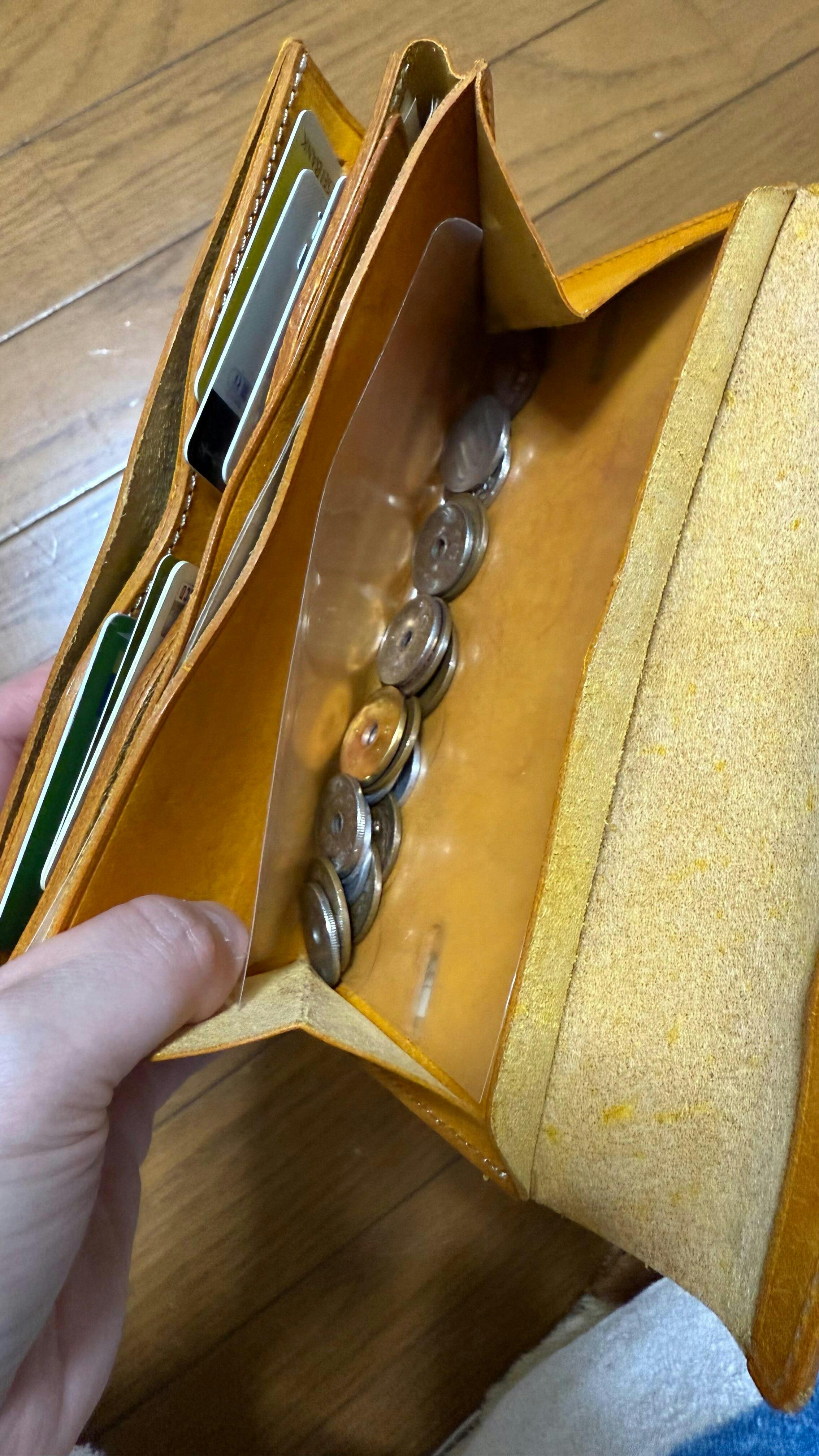 ※商品は最初、革が引き締まった状態ですので若干カード等入れにくさを感じることがございますが、お使いいただくほどに、革の繊維がゆるみ手馴染みが良くなり、カードも入れやすくなってまいります。