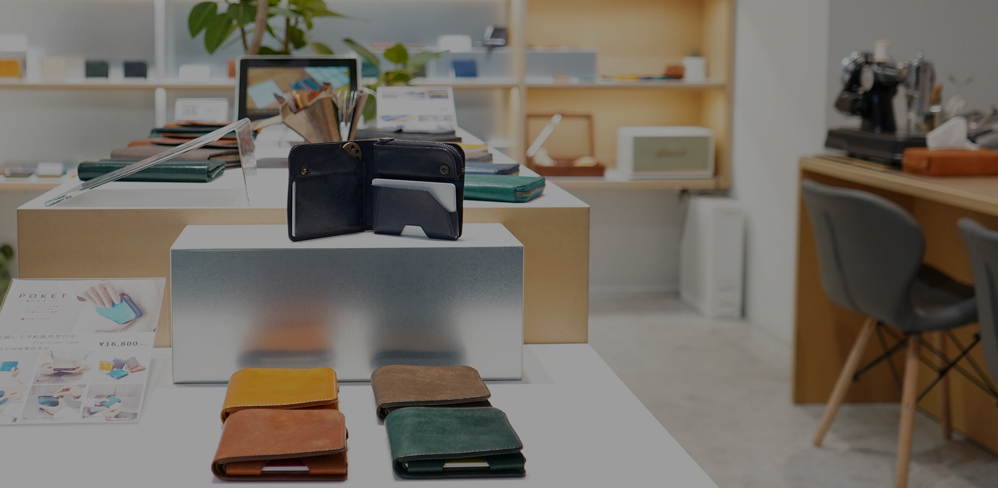 商品を見て、触っていただくことはもちろん、今後はお店に常設した作業スペースを活用し革小物の製作を体験していただける